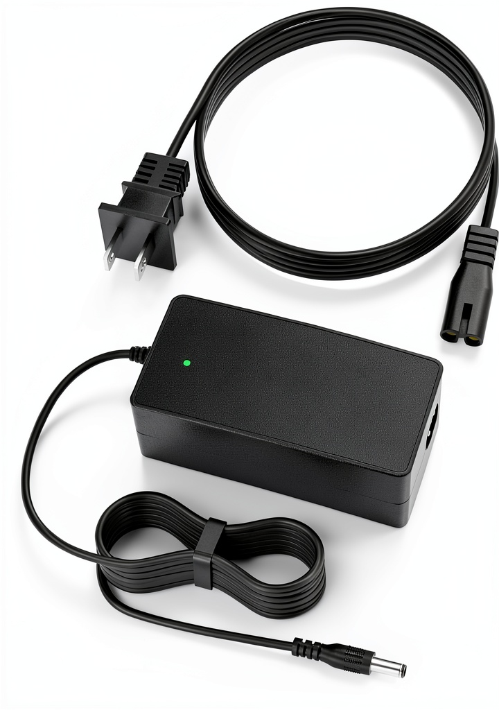 - 9.8-foot power cord and barrel round plug tip for easy and flexible charging.